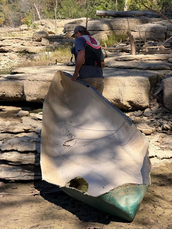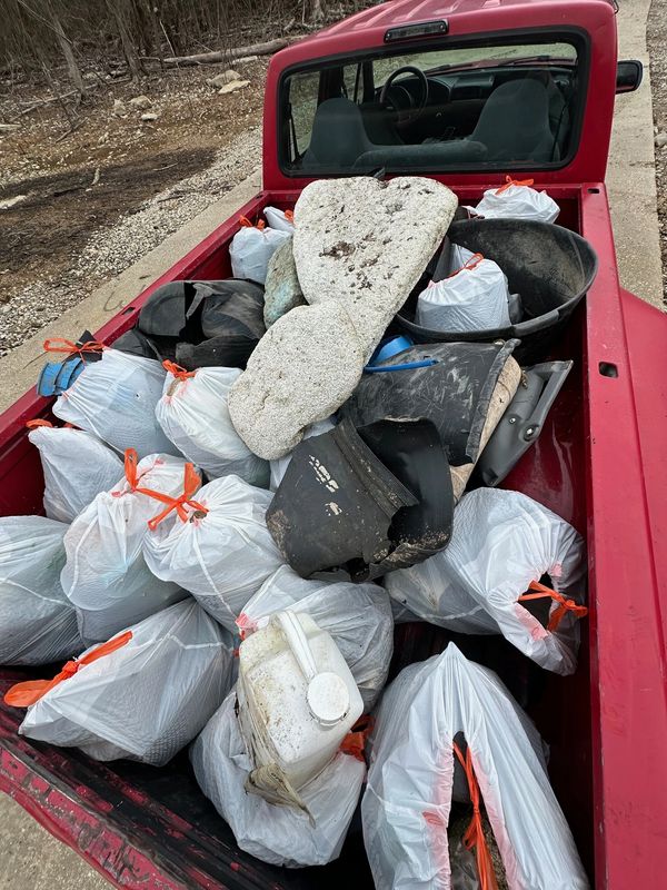 We went out in our, new to us, Jon boat today looking for some trashy places on the lake. Since the lake is 64 miles long, we have plenty of places to look! We collected something from almost every cove we came across and got one big pile to be collected later by the army corps with their pontoon. It was a total weight of 529.19 Pounds!